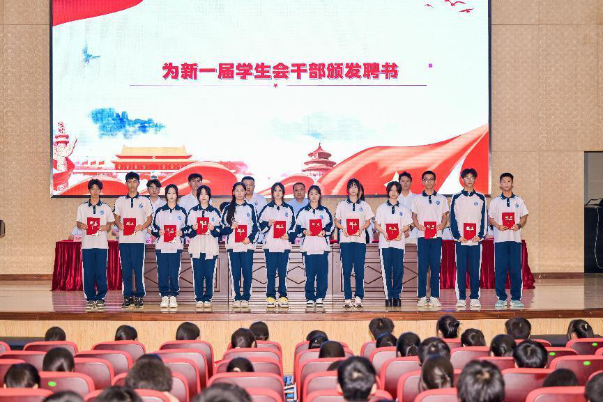 为新一届学生会干部颁发证书