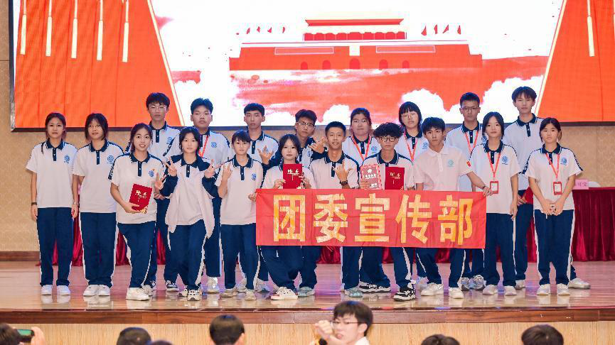 团委社会实践委员梁自乐老师宣读湛江理工职业学校《关于2022-2023学年度优秀学生会干事的表彰决定》。