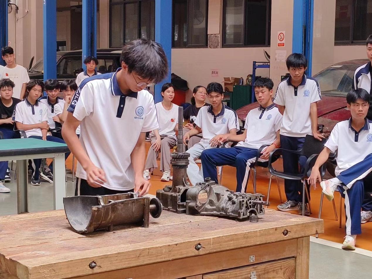 2024年5月16日,汽修专业汽车手动变速器拆装技能比赛,参赛选手在规定时间内完成拆装变速器,并解释工作原理。操作规范、安全。